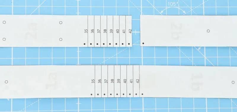 Découpez le patron le long des bords et coupez les parties 1a et 2a au bon nombre. Avez-vous besoin d'un collier de 42 centimètres ? Puis coupez le patron au nombre 42.