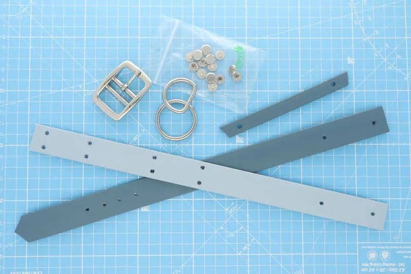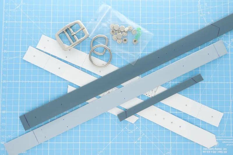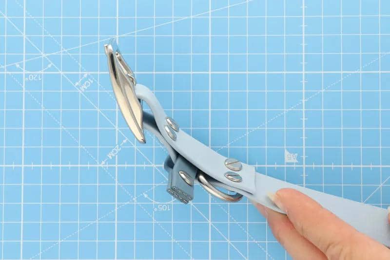 Pour un résultat optimal, choisissez deux tailles de trous différentes. Pour les 4 trous en ligne pour le fermoir (partie 1a du patron) faites des trous de 3,5 mm et pour les autres trous choisissez 4,5 mm.