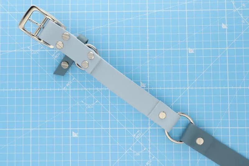 Dans le kit, vous trouverez le BioThane, les accessoires et une feuille A4 avec le patron. Vous pouvez également télécharger le patron du col en BioThane au format PDF.