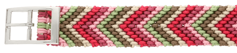 Si vous souhaitez utiliser de la micro-corde, il est utile de faire un échantillonnage au préalable afin de connaître la quantité de corde dont vous aurez besoin. Si vous nouez le Chevron avec six couleurs de Paracord Type I, votre nouage aura une épaisseur d'environ 0,8 cm et une largeur de 3,5 cm.