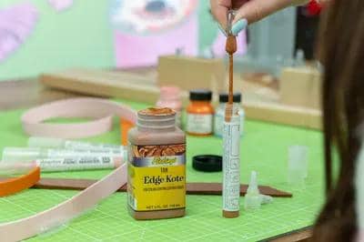Vous avez terminé mais il reste encore de la peinture dans le marqueur ? Vous pouvez très bien conserver la peinture dans le marqueur. Si vous n'en mettez pas trop à la fois, la peinture ne séchera pas. Il n'est donc pas nécessaire de remettre la peinture pour cuir Angelus ou le Fiebing’s Edge Kote dans le pot lorsque vous avez terminé.
