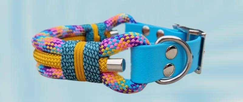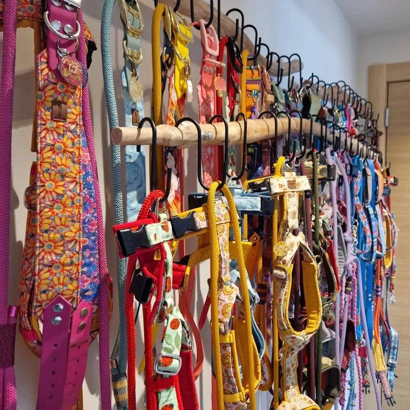 "Actuellement, je vends des colliers, des laisses, des harnais et des jetons. Ces colliers et ces laisses sont disponibles dans toutes sortes de versions : je travaille avec du tissu, du BioThane, du PPM, de la corde pour laisse de chien, de la paracorde, de la corde de cuir et de la corde de coton. Et je fais toutes sortes de créations en combinant différents matériaux".
