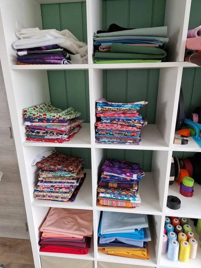 "Certains de mes tissus proviennent d'un grand magasin de tissus d'Ostende, mais j'achète la plupart d'entre eux sur Internet. On peut trouver beaucoup de tissus originaux en Amérique, mais il faut alors payer une fortune en frais d'importation. J'ai passé des heures à surfer à la recherche de tissus originaux et j'ai trouvé qu'il était difficile de trouver des tissus à la fois beaux et uniques".
