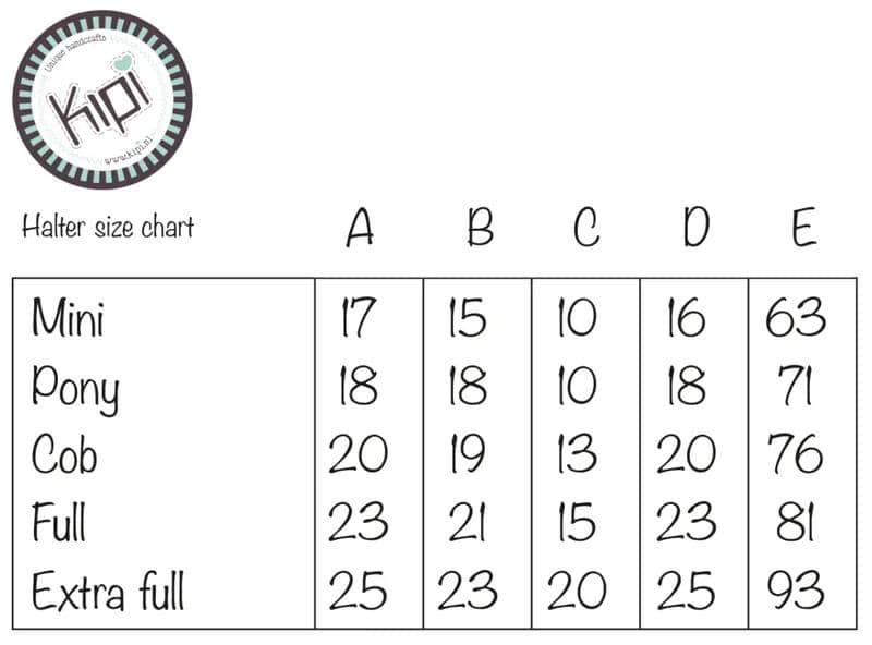 Pour obtenir un licol de bonne taille, vous devez connaître quelle doit être la longueur de chaque partie pour votre cheval ou votre poney. Le tableau ci-dessous indique les longueurs en centimètres dont vous aurez besoin pour le licol en corde du tutoriel si vous utilisez des tailles de licol standard.