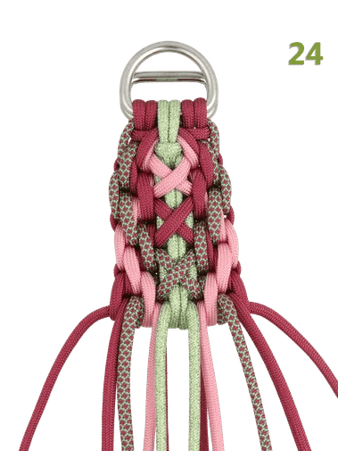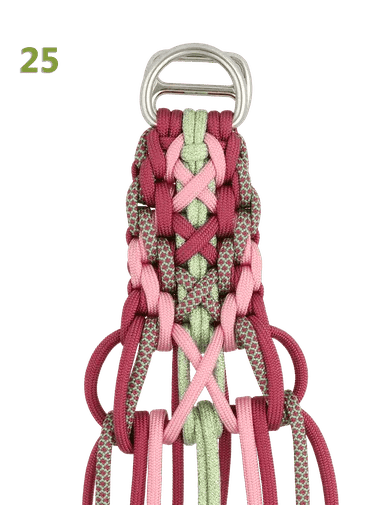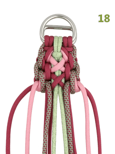 Si vous suivez le tutoriel de la photo et que vous faites ce nœud avec de la paracorde de type III, le collier mesurera environ 4,4 cm de large et 1,3 cm d'épaisseur. Dans le MatchMaker, vous pouvez voir combien de mètres de paracorde vous avez besoin et vous pouvez choisir les couleurs pour votre projet.