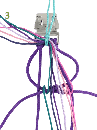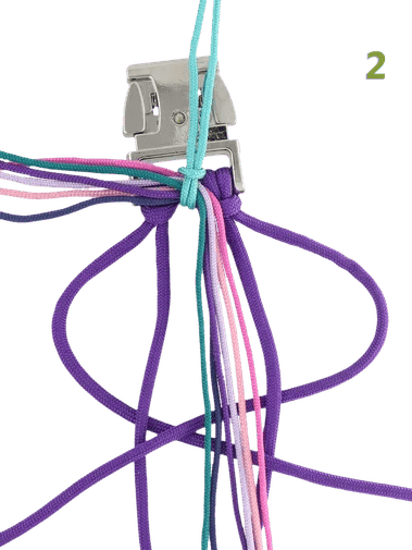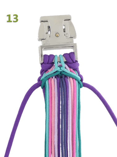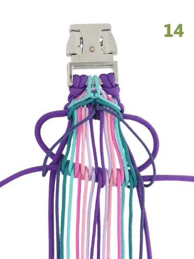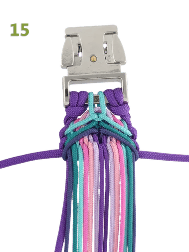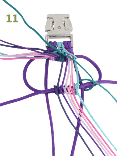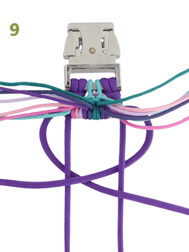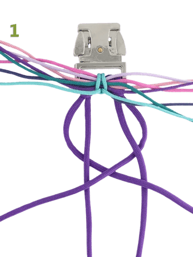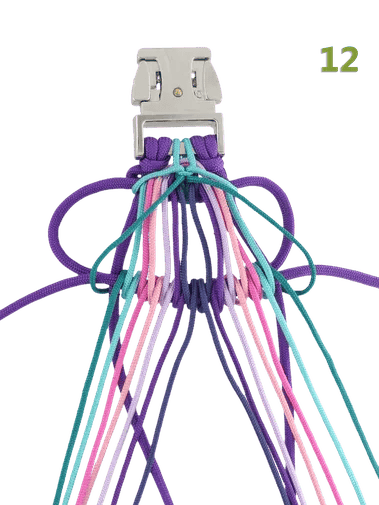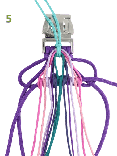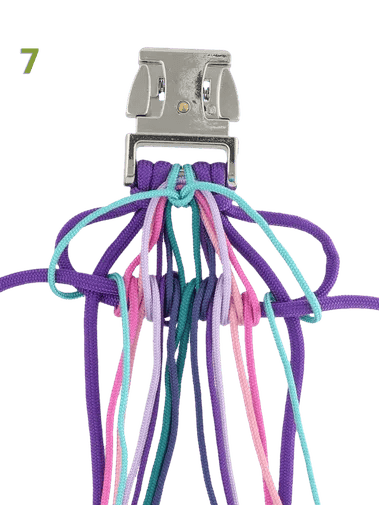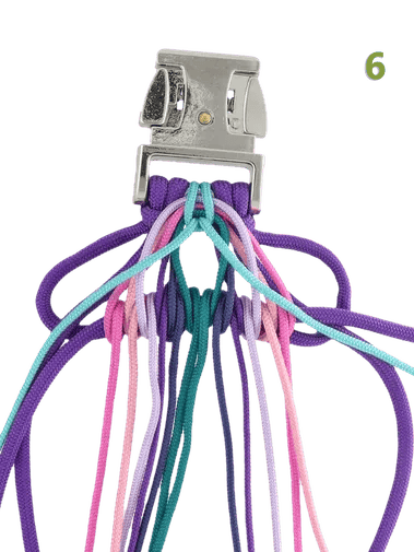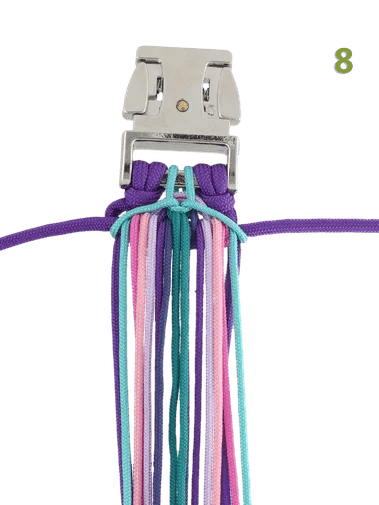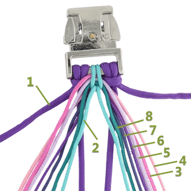 Couleur 1: Deep purple Paracord 550 Type III, couleur 2: Turquoise Paracord Type I, couleur 3: Bubble Gum Pink Paracord Type I , couleur 4: Pastel Pink Paracord Type I, couleur 5: Pearl Lilac Paracord Type I, couleur 6: Deep Purple Paracord Type I, couleur 7: Marine Blue Paracord Type I, couleur 8: Teal Paracord Type I